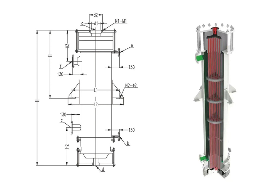 列管式石墨換熱器主要用于物料的加熱、冷卻、冷凝、蒸發和吸收,能承受大多數有機或無機介質。
